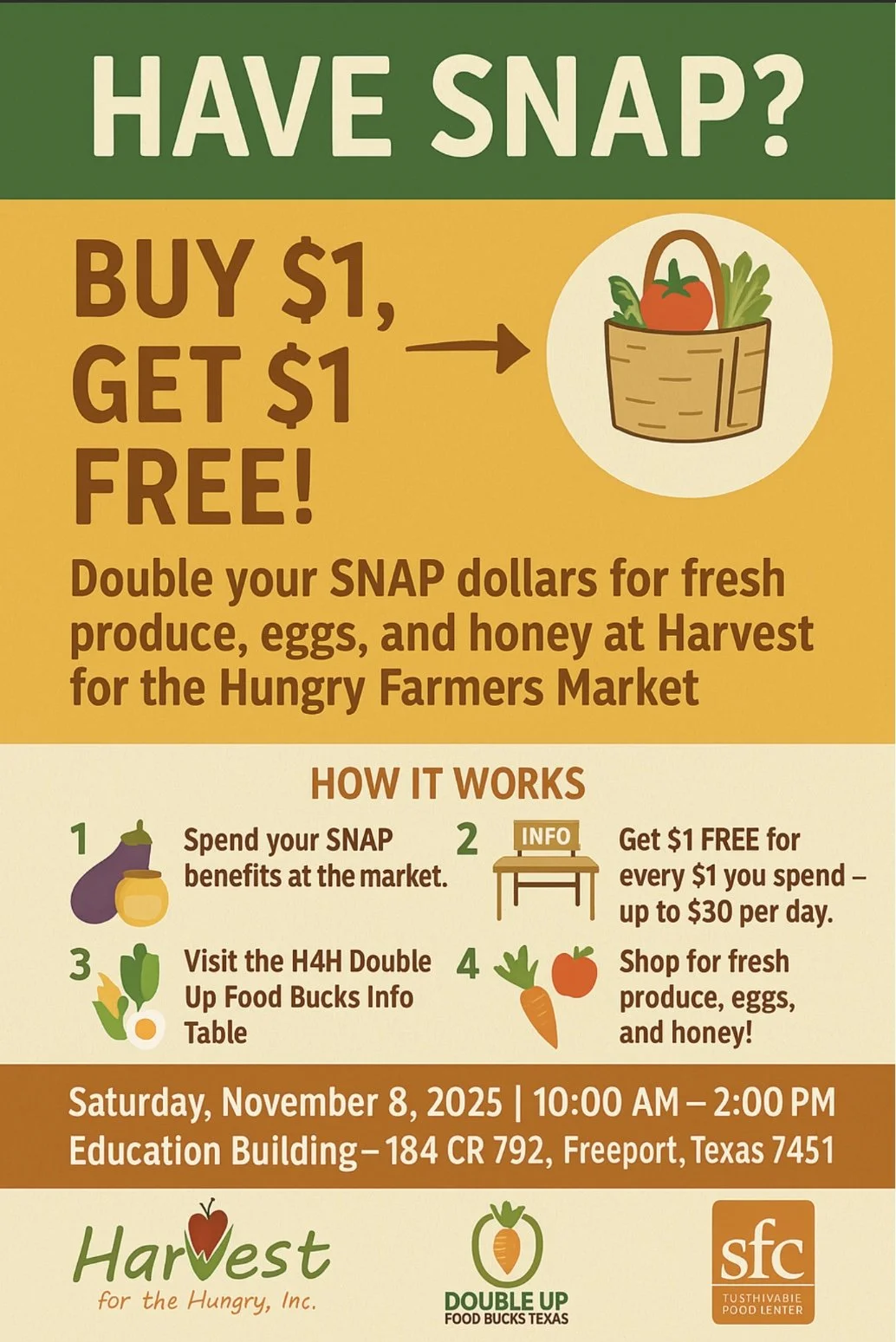 Email gluna@harvestforthehungrytexas.org for more information on SNAP benefits and more at Harvest for the Hungry.